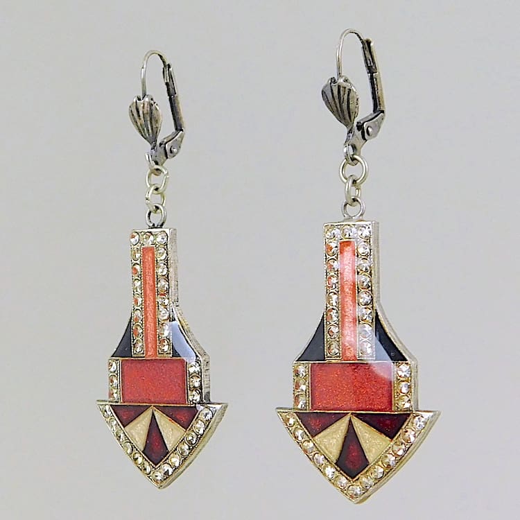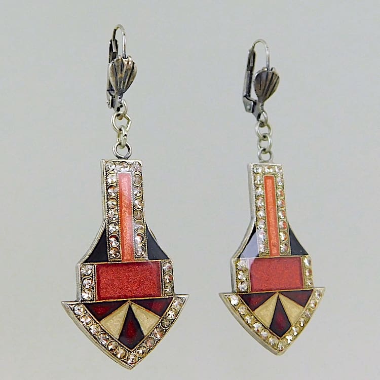French enamel and diamonte earrings for pierced ears.