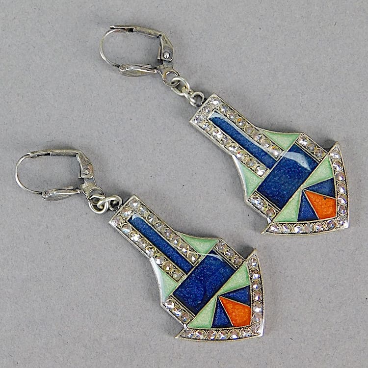 French enamel and diamonte earrings for pierced ears.