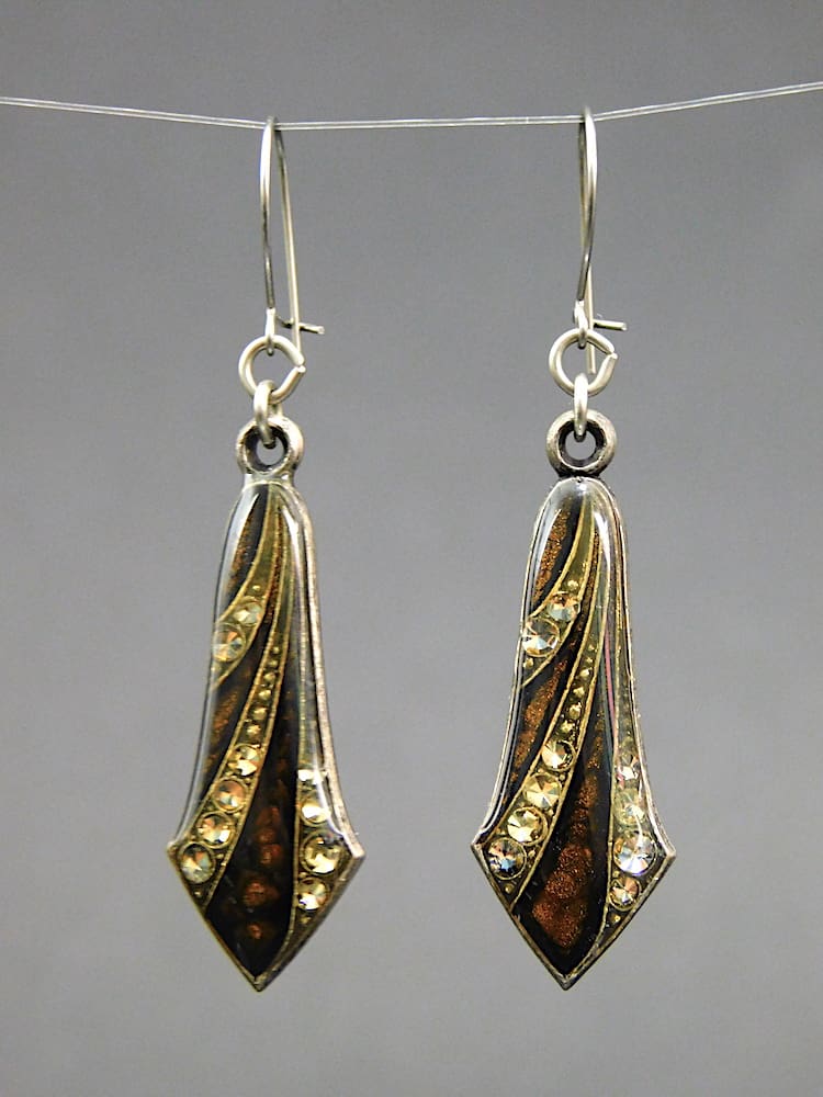 French art deco brown enamel and diamonte earrings by Pierre Bex.
