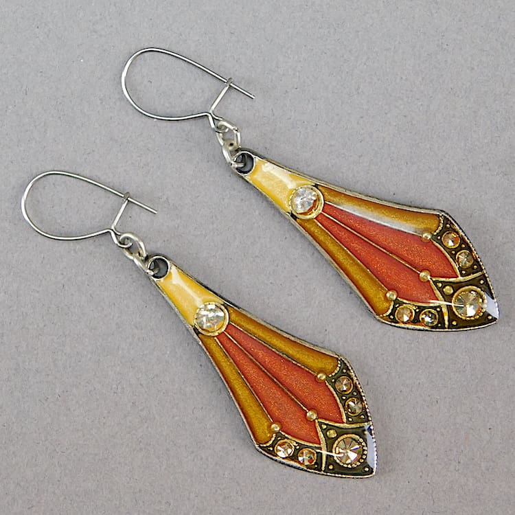 Pierre Bex Earrings. French enamel and diamonte earrings for pierced ears and fitted with silver safety clasp