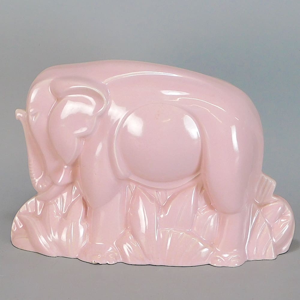 Stylised ceramic pink crackle glaze elephant, an unsigned Lemenceau.