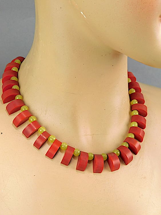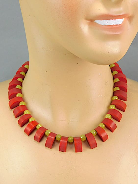 1920’s phenolic red and yellow fringe necklace.