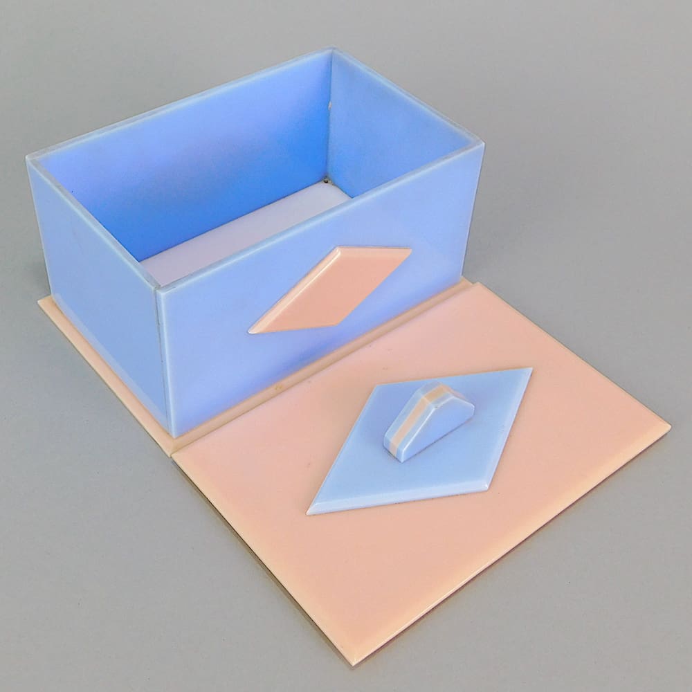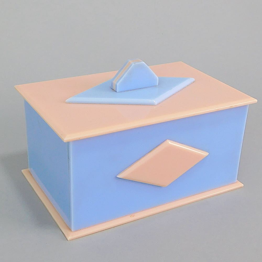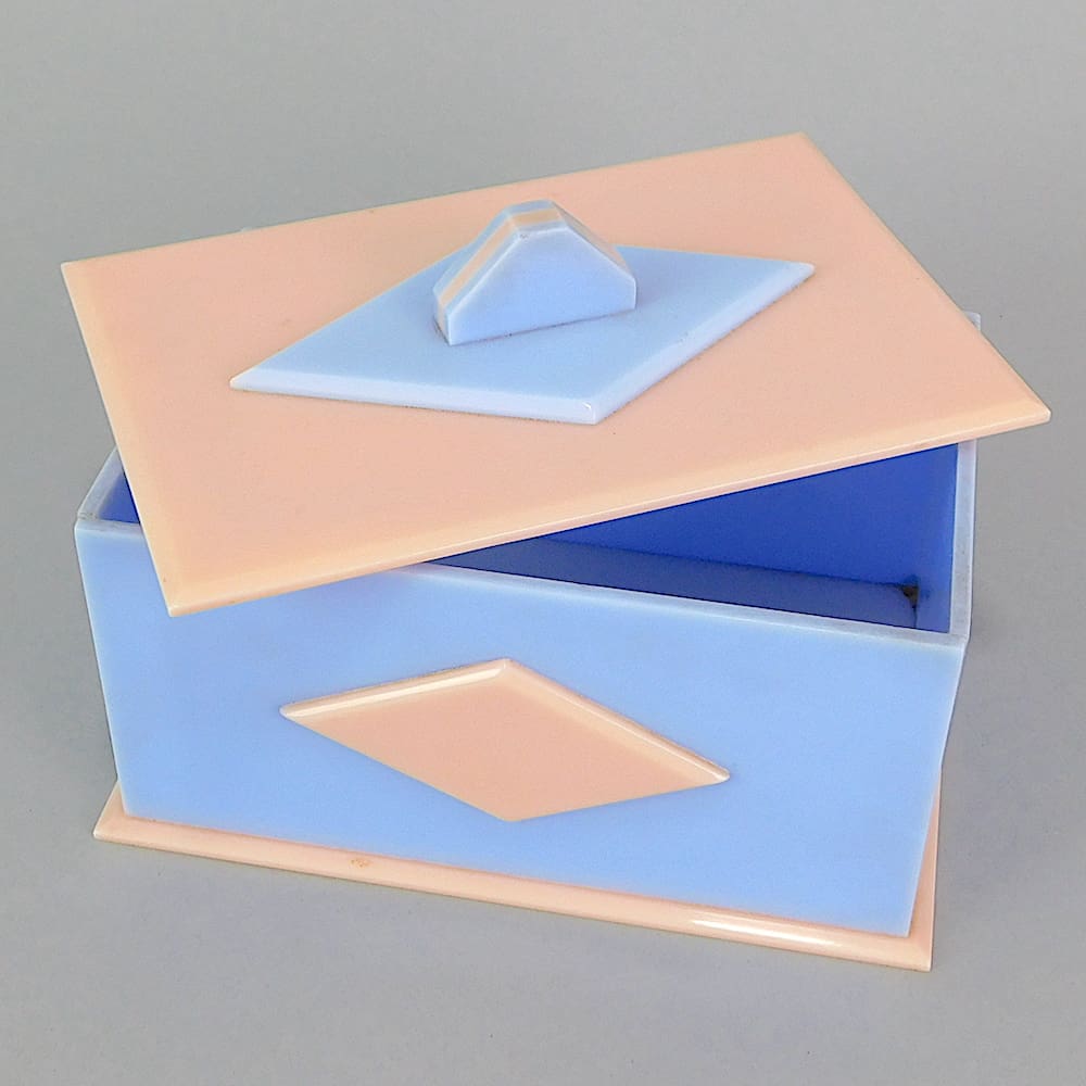 English pale blue and pink art deco jewellery or vanity box.