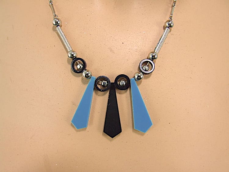 Black and blue galalith necklace by Jakob Bengel. Made in the early 1930s.