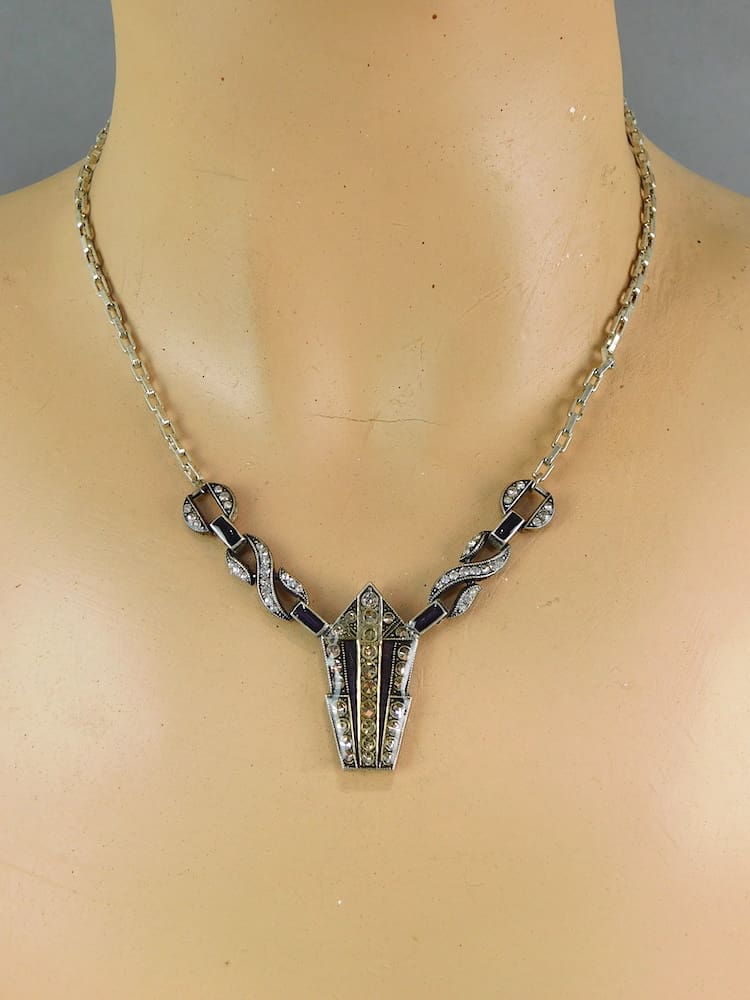 French art deco purple enamel and rhinestone necklace.