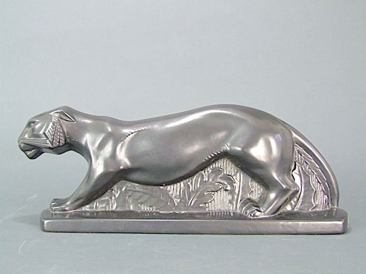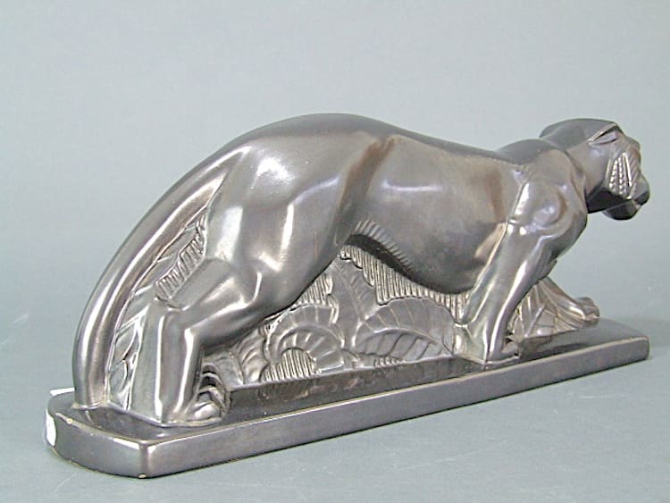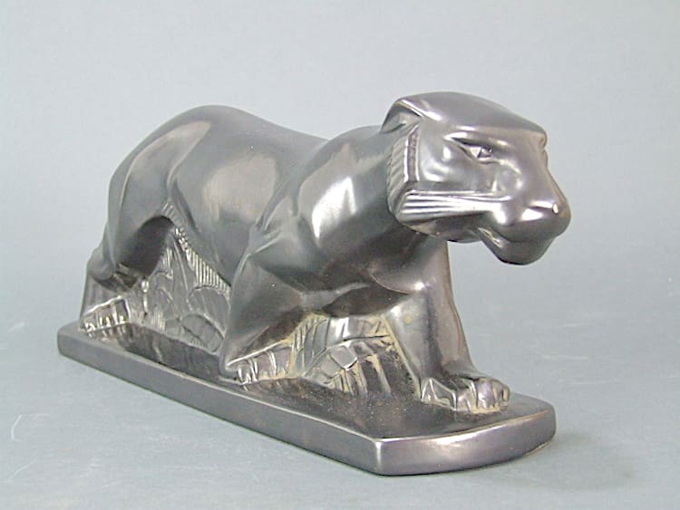 French ceramic black glazed art deco cubist panther. Unsigned and artist unknown.