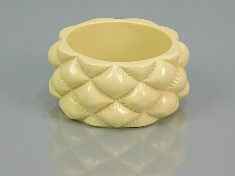 It measures 1.75 inches (4.5cm) wide. It will fit a small to medium sized wrist as it has a hole diameter of 2.5 inches (6.5cm).