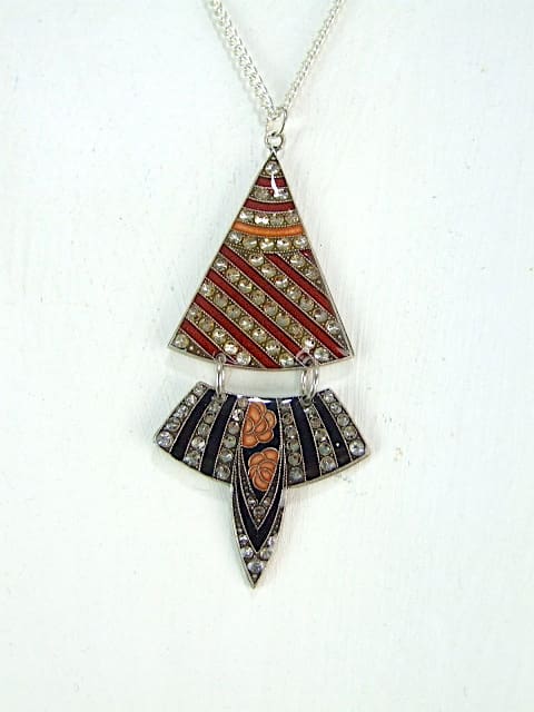 French enamel and diamonte pendant necklace.