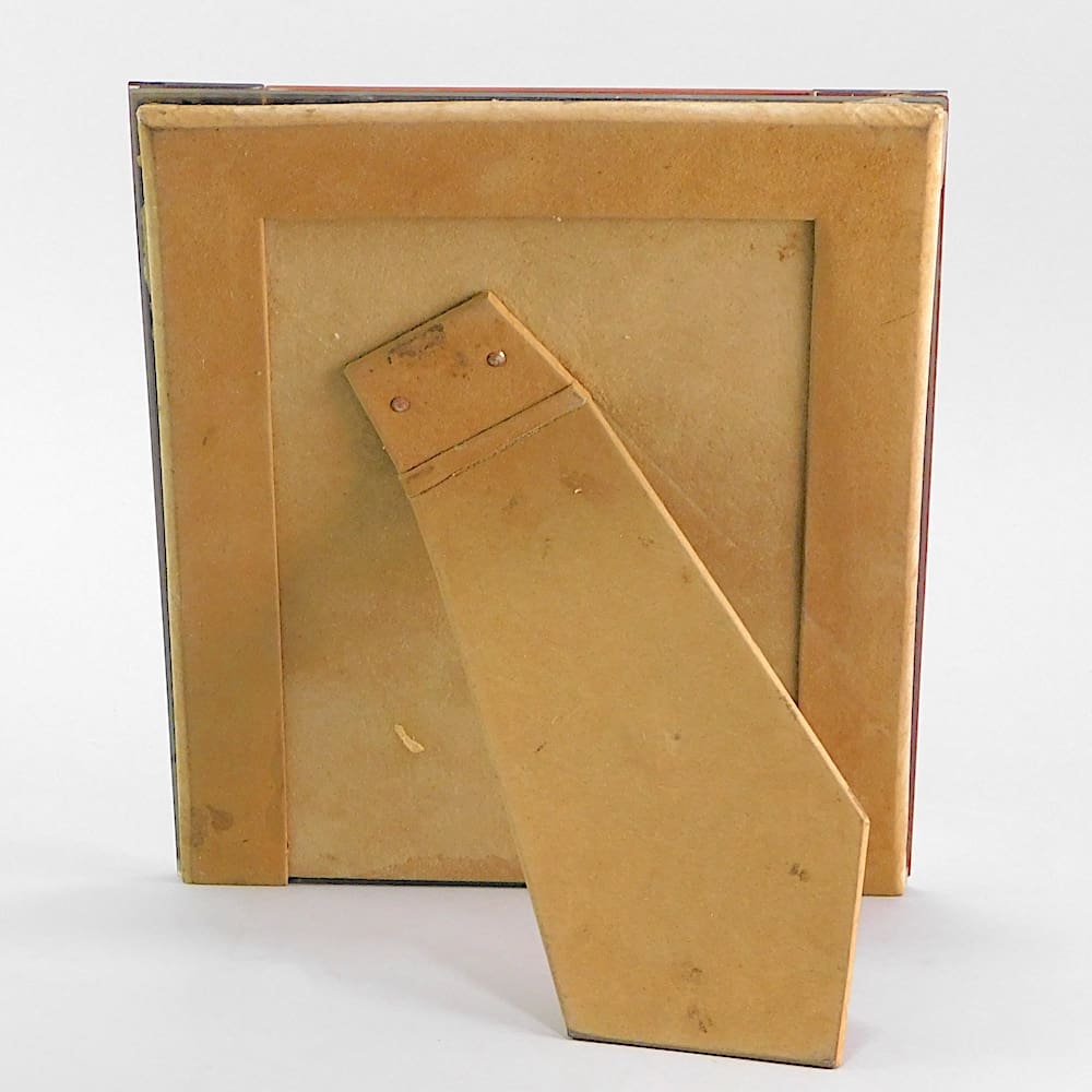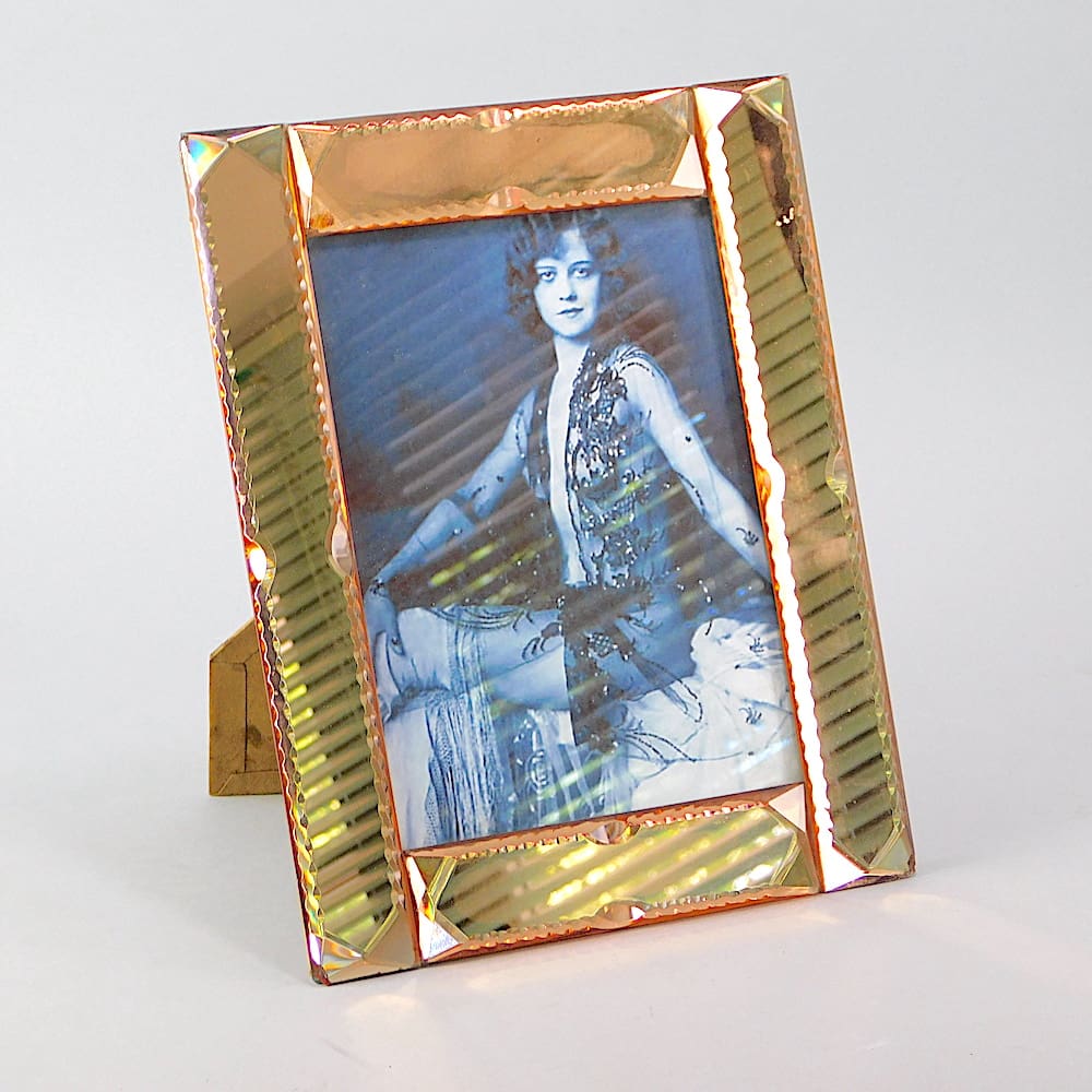 A large French peach mirror glass photo frame. Nice bevelled detail and with an easel stand to the reverse.