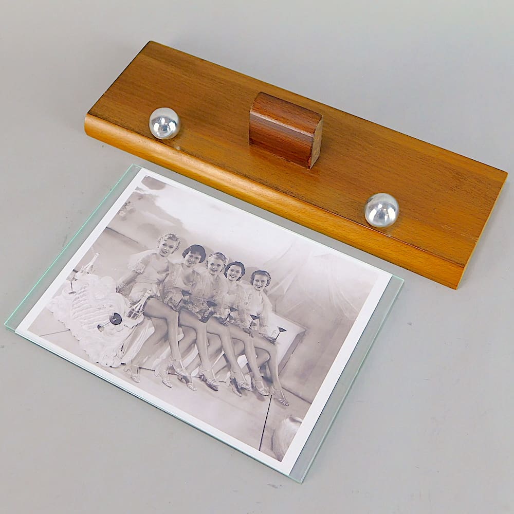 French wood and chrome metal ball photo frame, perfect for a landscape picture.