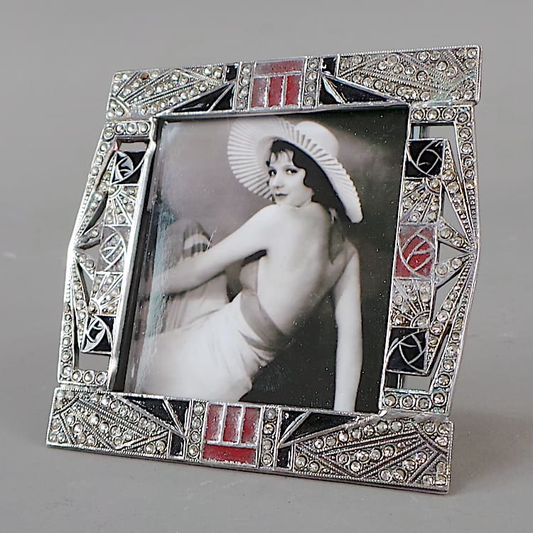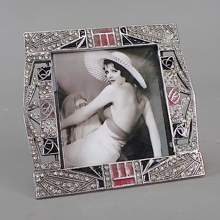 French Art Deco black enamel frame with rhinestone inserts.