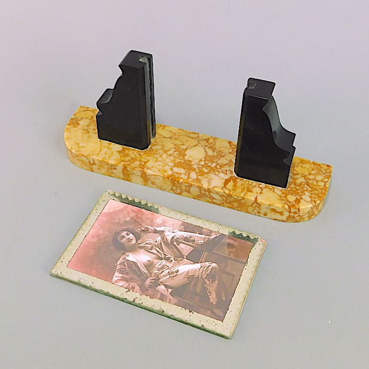 French art deco marble photo frame. Currently showing an art deco gypsy show-girl photo.