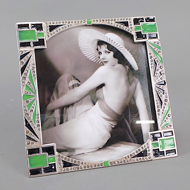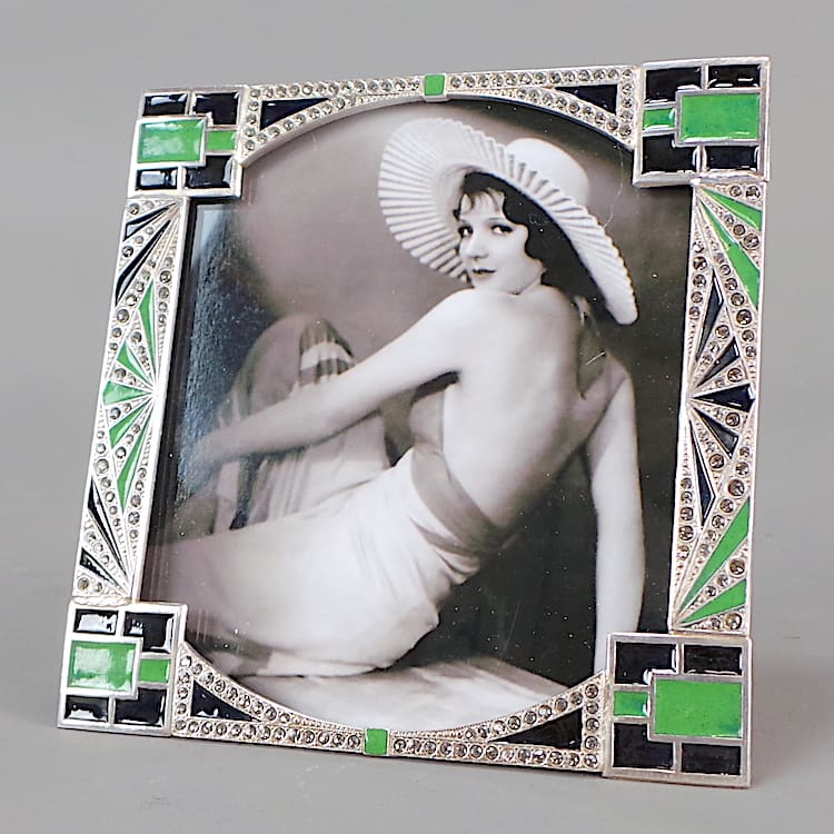 French Art Deco green and black enamel frames with rhinestone inserts.