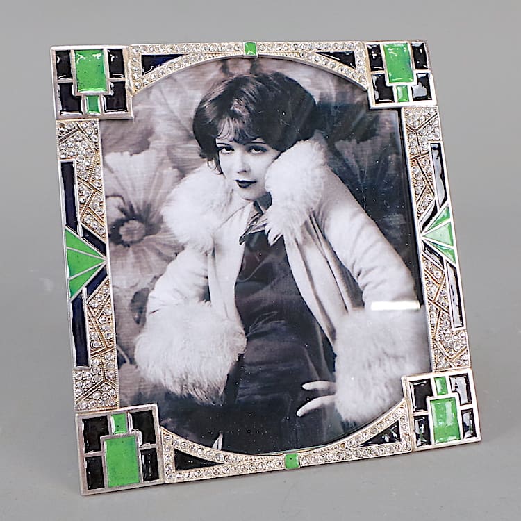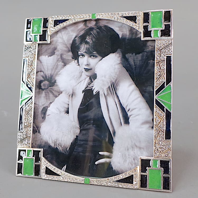 French Art Deco green and black enamel frames with rhinestone inserts.