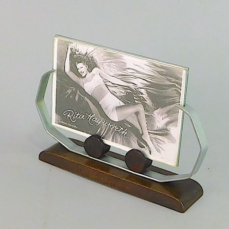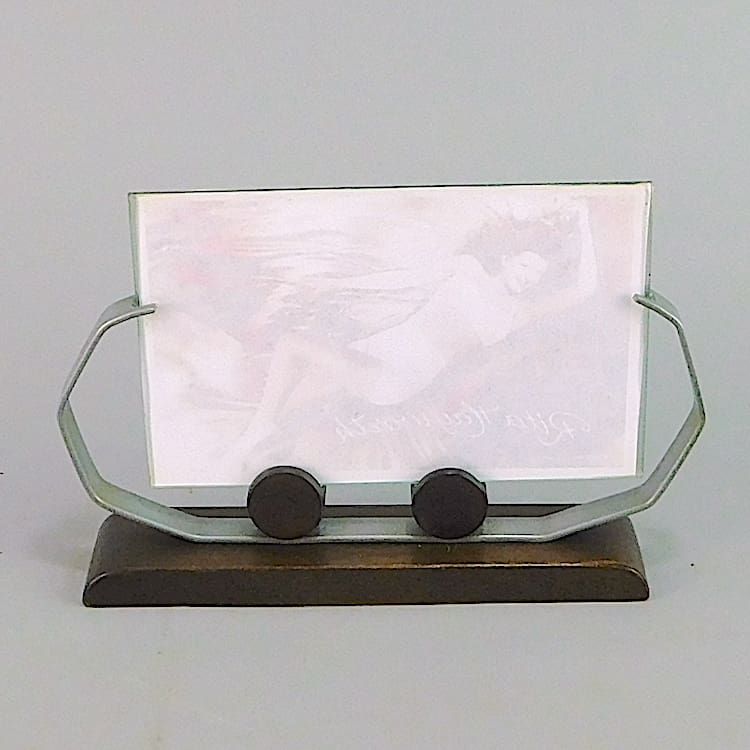 A French modernist art deco photo frame. Chromed metal support on a wooden base.