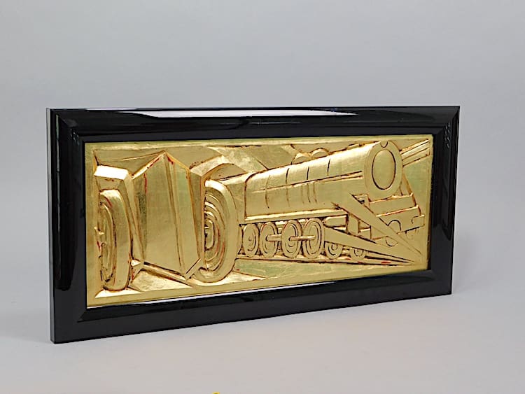 French art deco gold leaf gesso panel. After the panel design by Joel et Jan Martel.