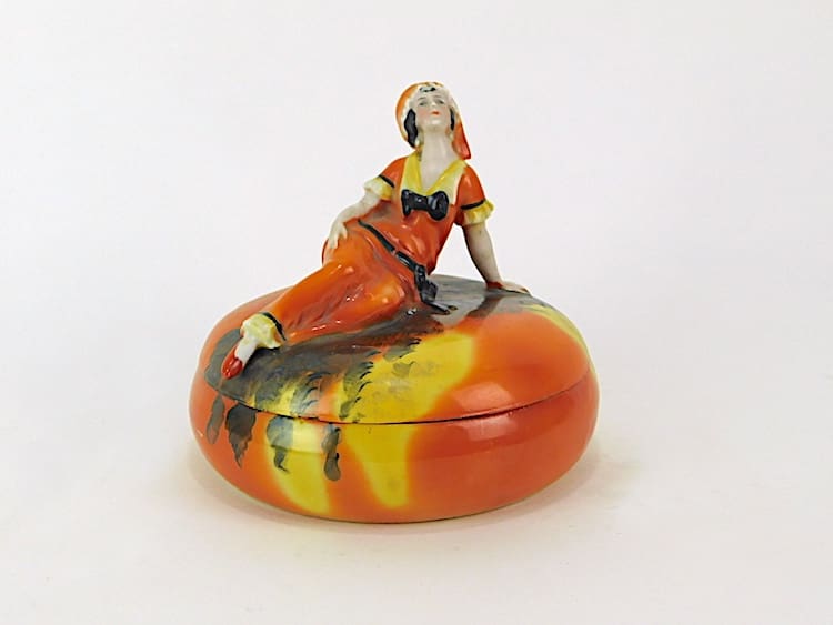 German hand painted ceramic lady powder bowl.