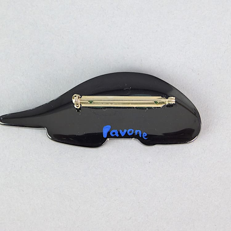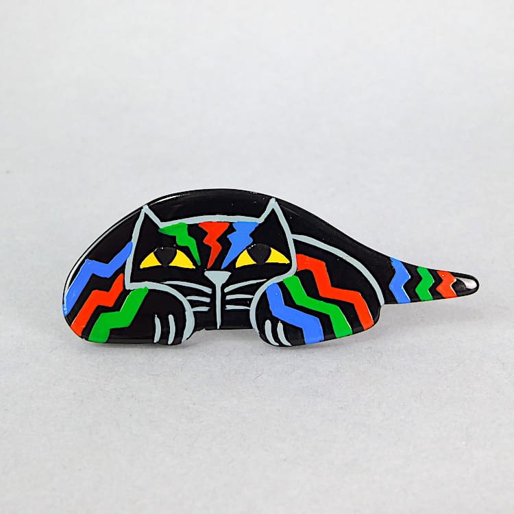 French vintage galalith hand painted art deco cat brooch by Marie-Christine Pavone known as Chat Riton.