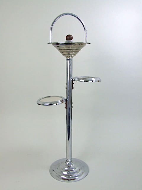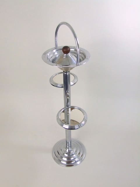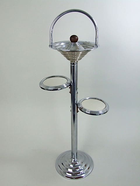 chromed metal and mirror glass. The shelves have mirror glass to the tops and to the centre at the top is an ashtray with a pyramid removable cover.