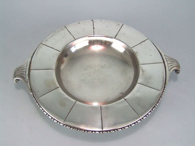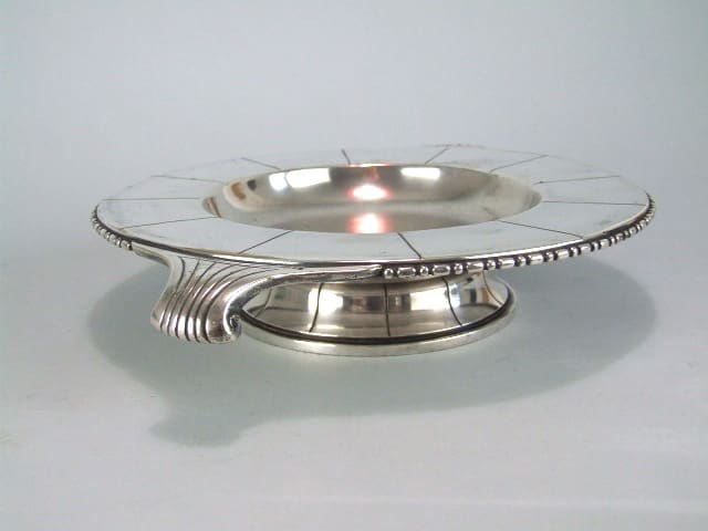 French silver plated tazza with flared foot detail and spoked patterning to the top. Stamped with a hallmark and bearing a makers initials GM.