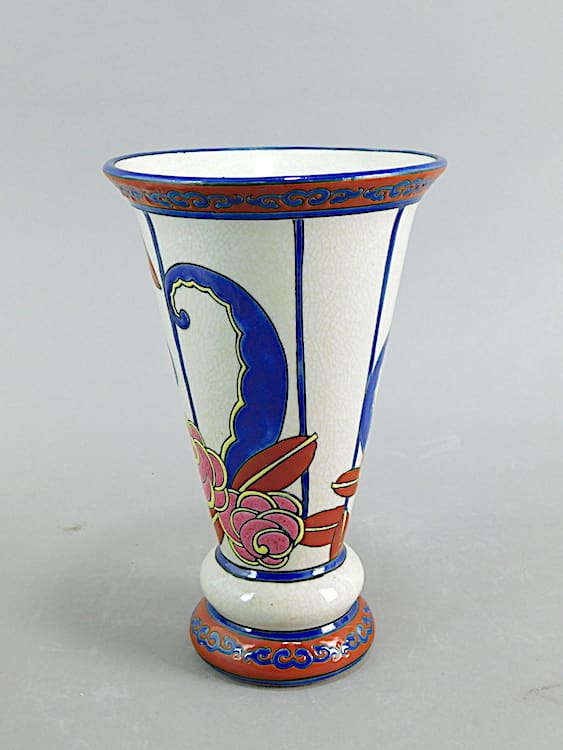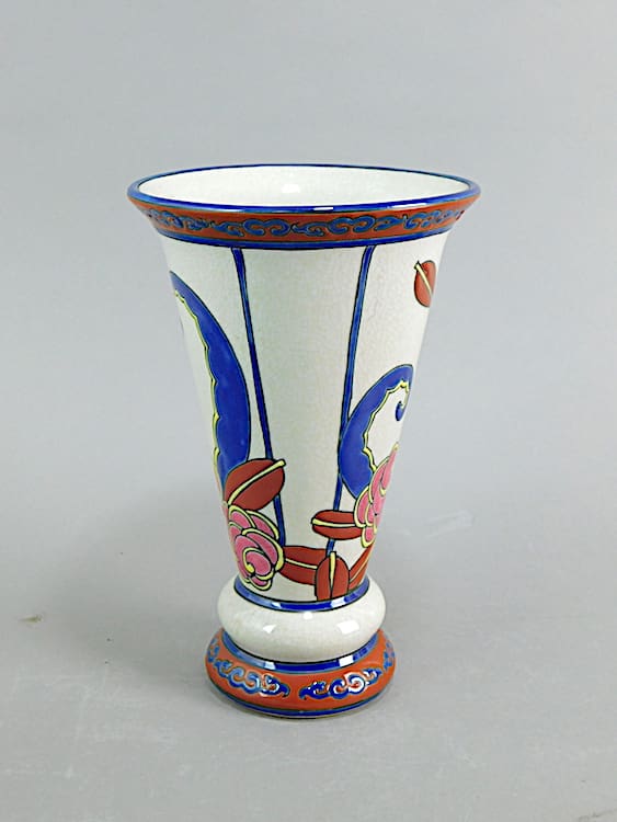 Boch Keramis style contemporary flared floral crackleglaze vase and marked Keralouve to the base.