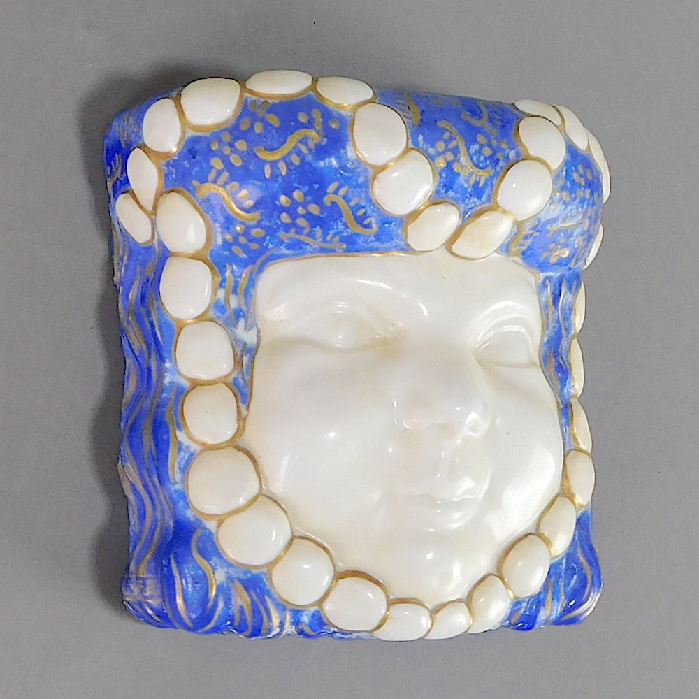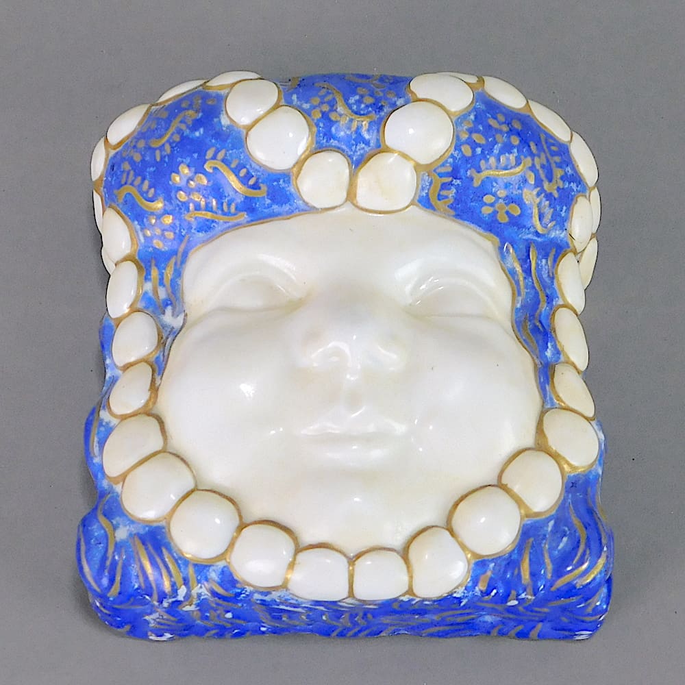 French ceramic wall mask, might even be a night light? If you hold a bulb behind it it glows due to the thin ceramic.
