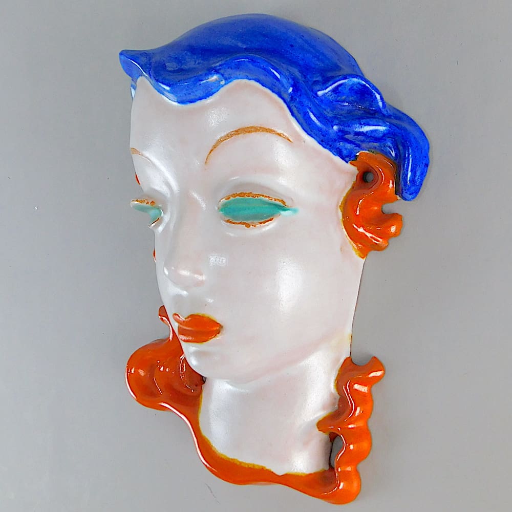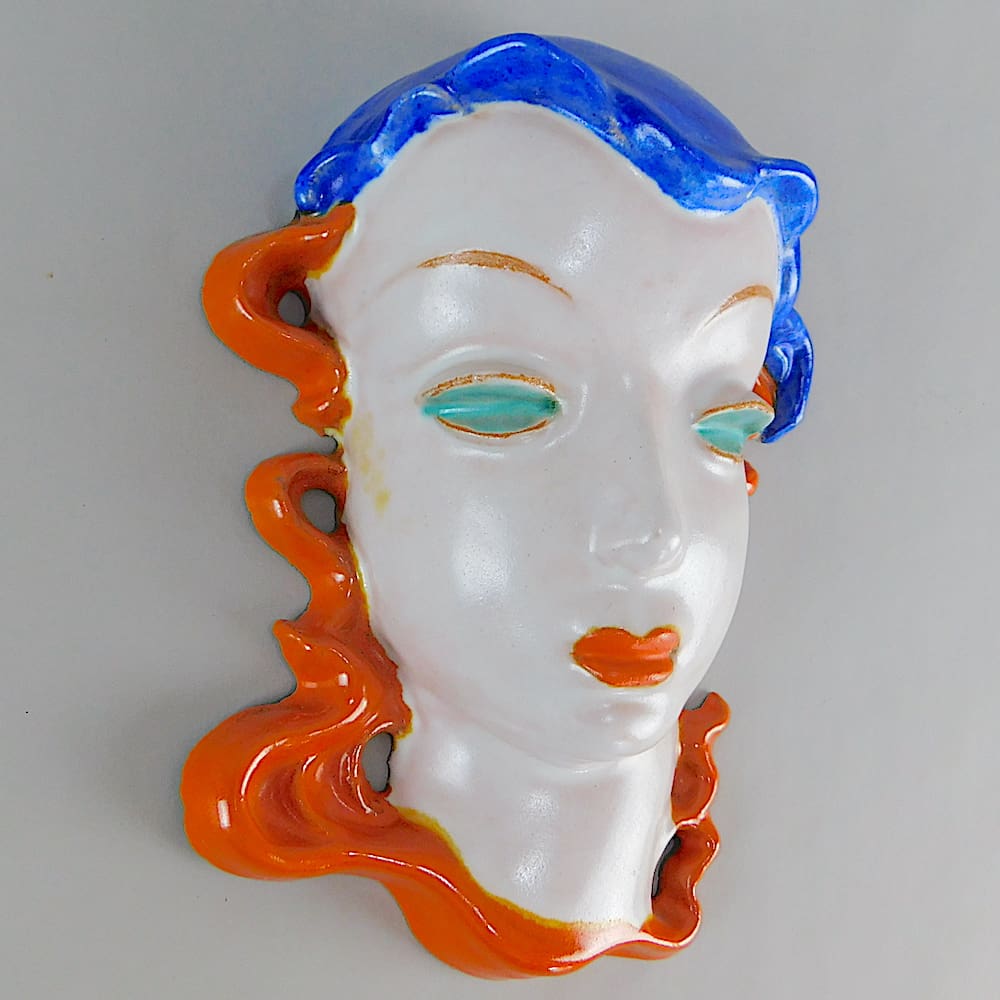 Pretty lady in a hat, a hand finished and painted terracotta mask by the Goldscheider foundry.