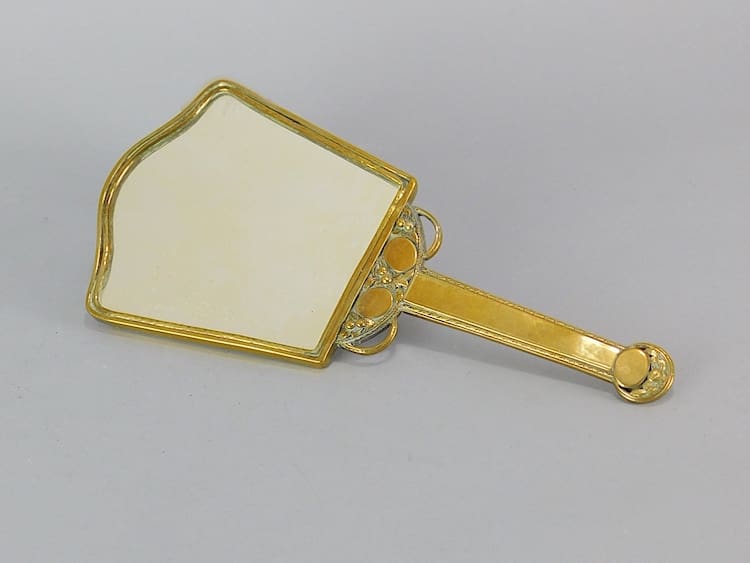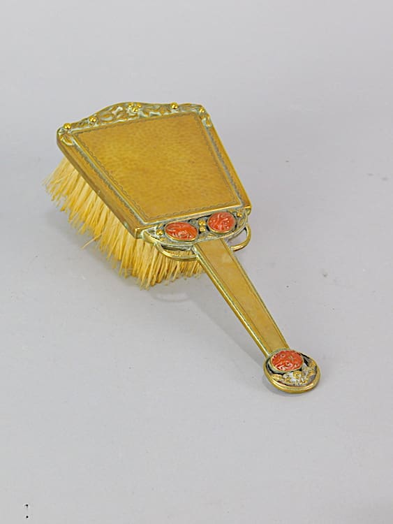 Wonderful 4 piece set. Hand mirror, 2 brushes and matching comb with delightful foliage and inset detailing.