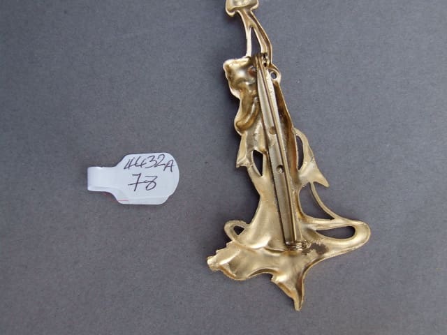 An original art nouveau gilt copper brooch. Wonderful crisp casting, circa 1910.