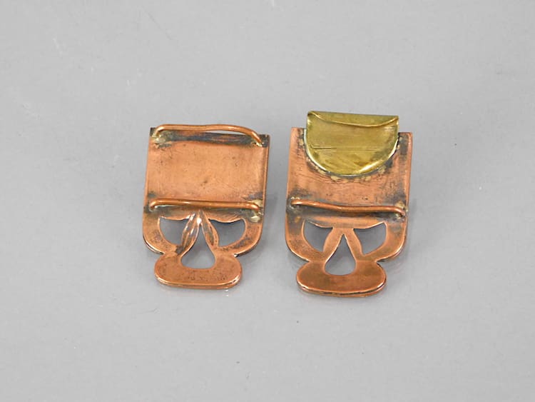 Copper buckle with blue inset stones. Genuine arts and crafts period item.
