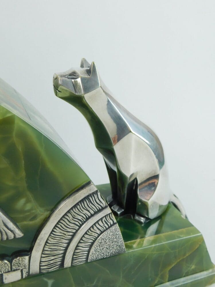 We have recently discovered that this clock is by Léon Hatot (ATO), although the clock version of the cats is unsigned.