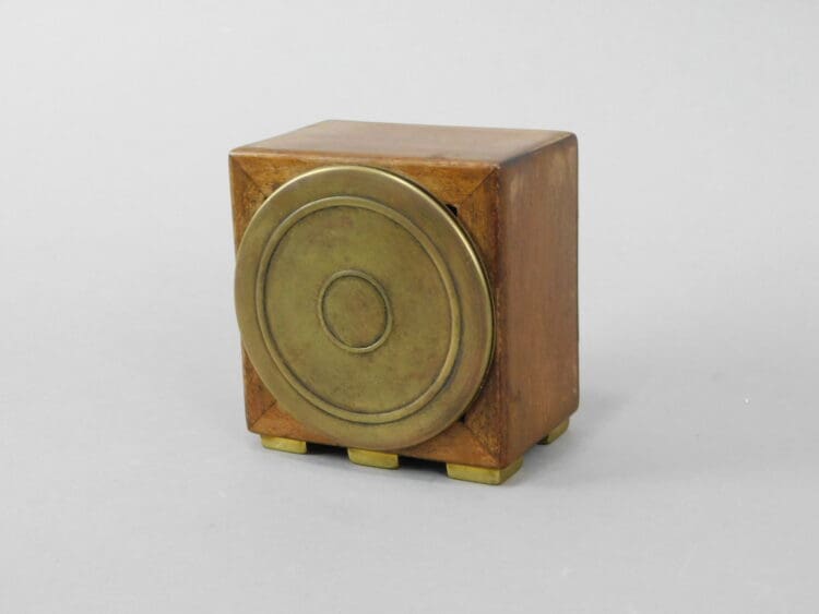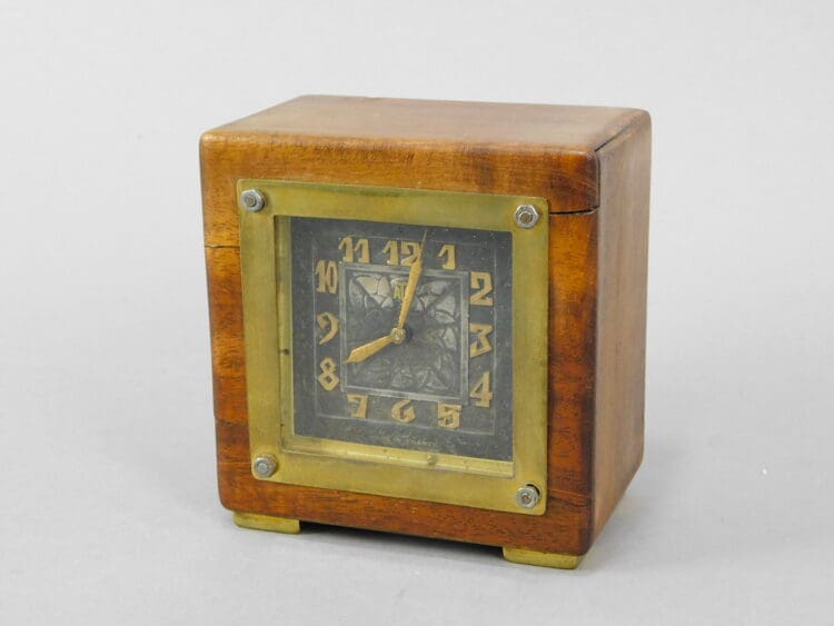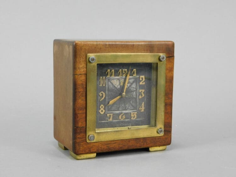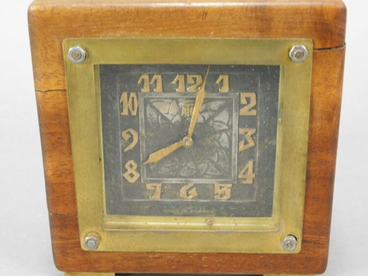A signed French wooden cased clock with bronze face, surround and feet, was made by Leon Hatot.