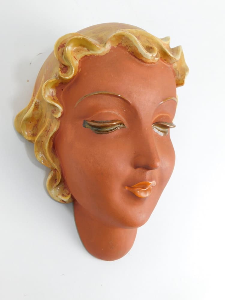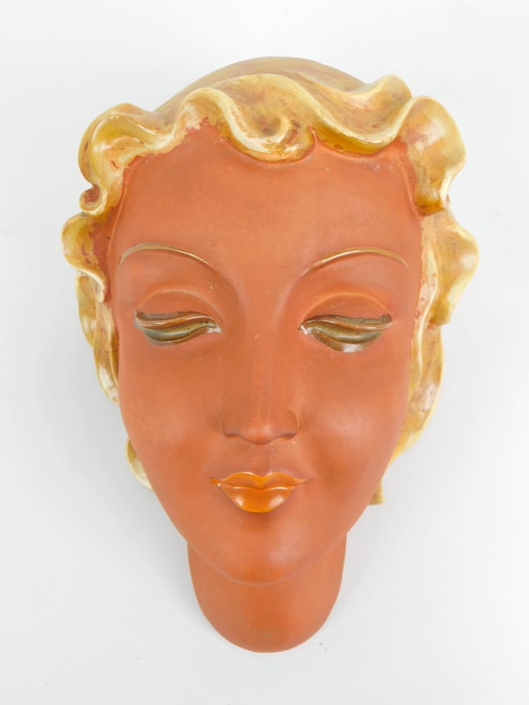 Beautiful Austrian wall mask by Keramos, Wien, made in the early 1930’s, designed by Rudolf Podany and modelled as Betty Davis.