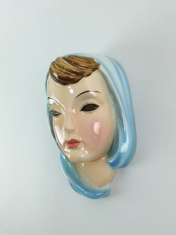 Pretty, fine ceramic wall mask made during the 1930s by Keramos, Vienna.