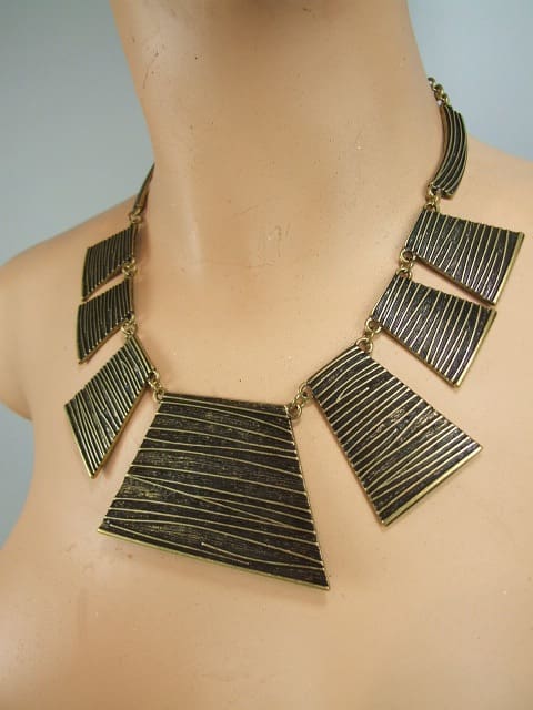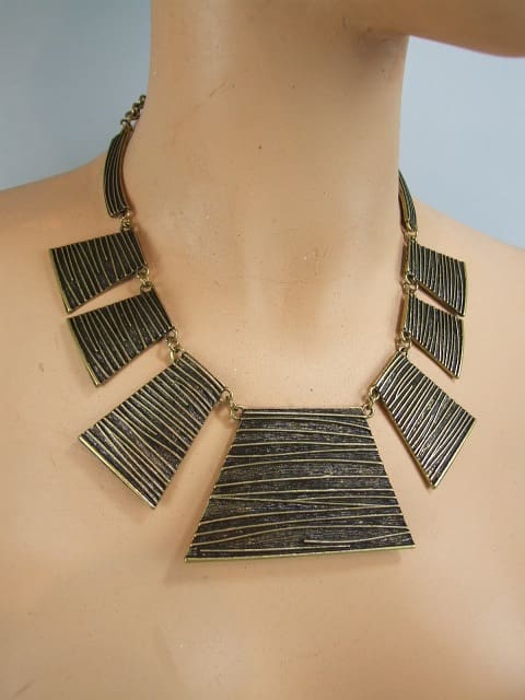 The central largest panel measures 3 inches (7.5cm) wide and 2 inches high (5cm) and the total length from clasp to clasp is 19.5 inches (50cm) long.