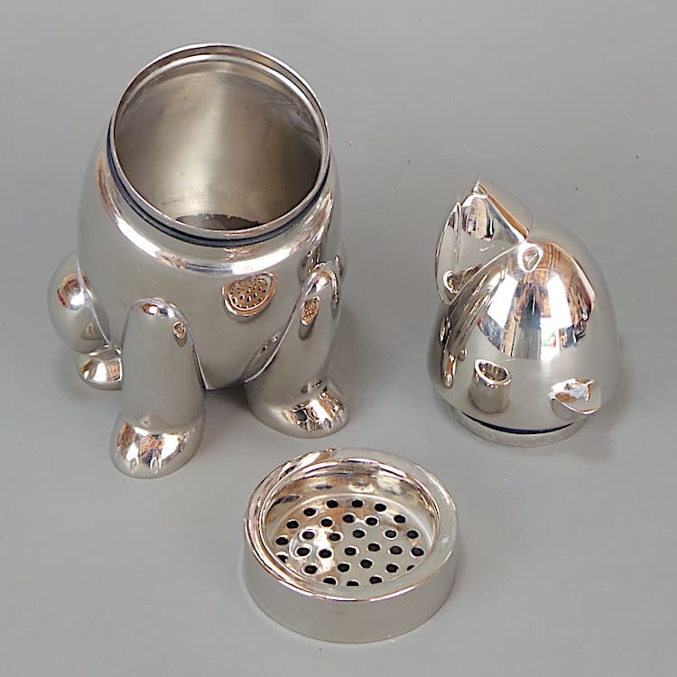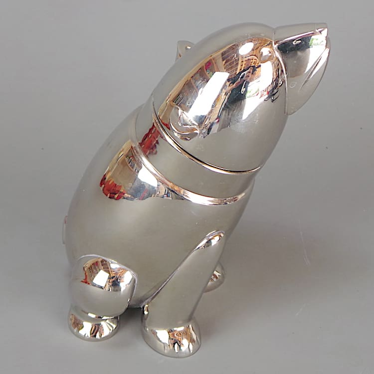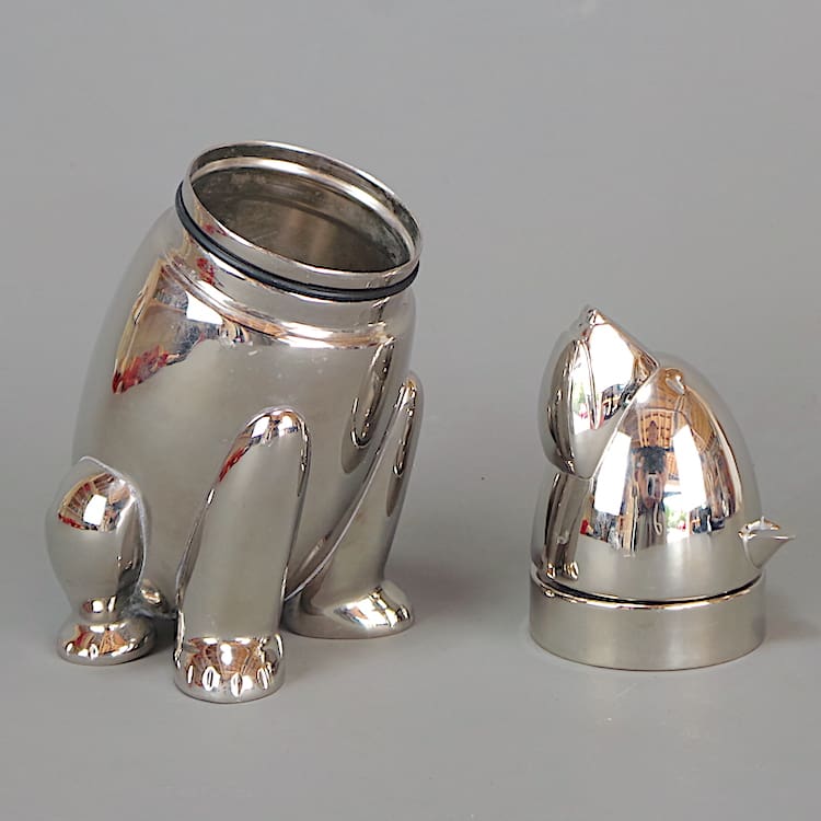 Chrome plated smaller (baby) polar bear Art Deco cocktail shaker.