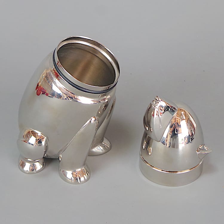Chrome plated smaller (baby) polar bear Art Deco cocktail shaker.
