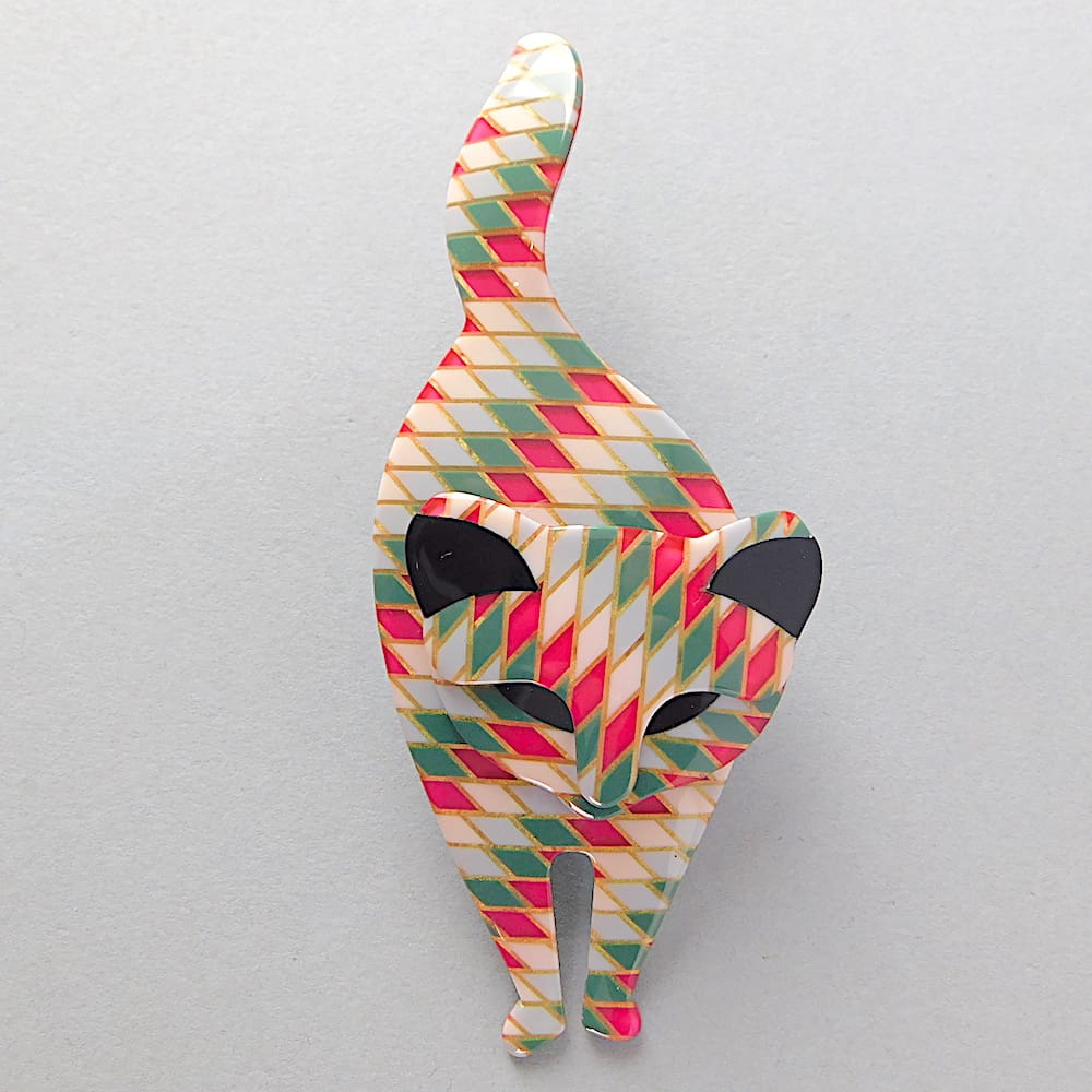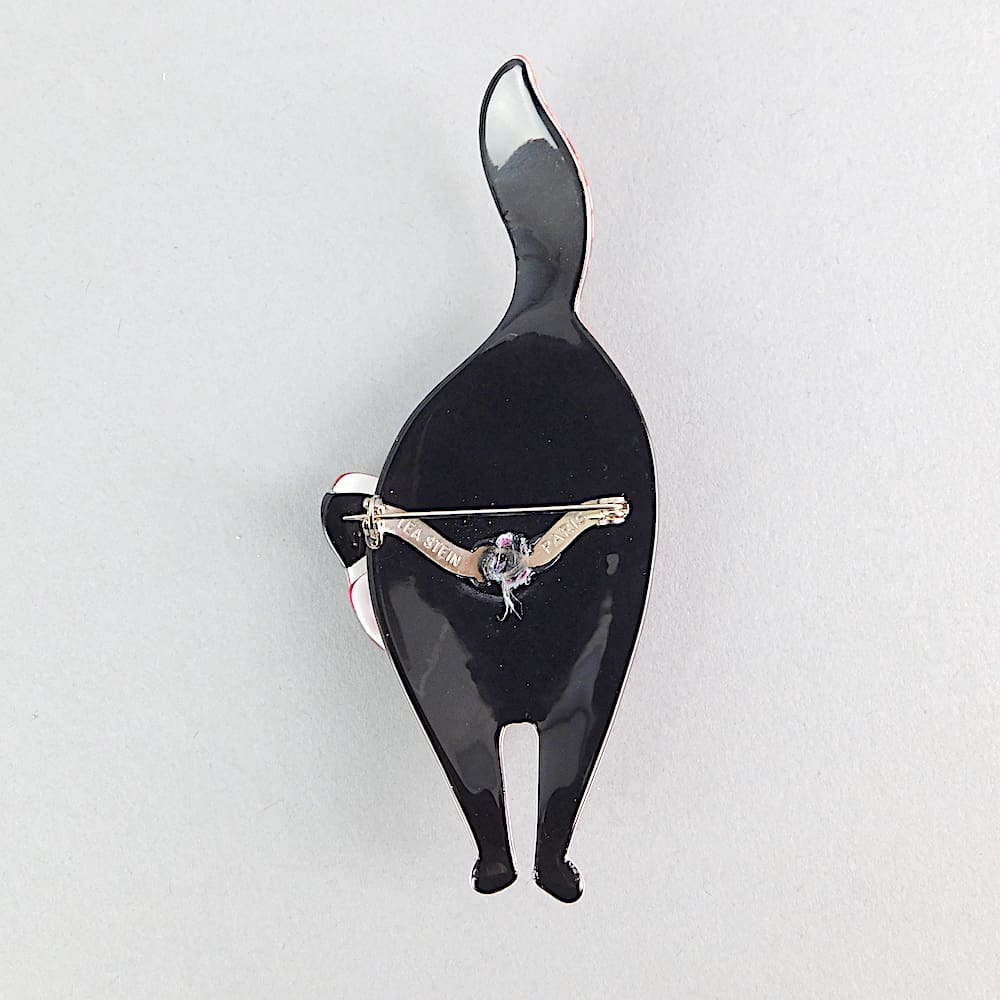 Bachus cat brooch made in the 1990’s by Lea Stein. Signed on the V clasp.