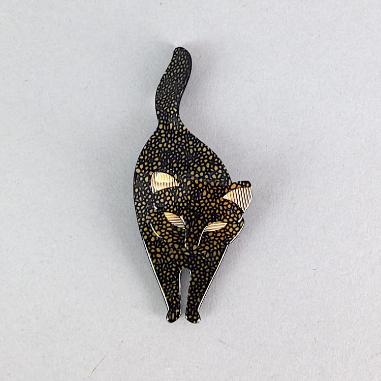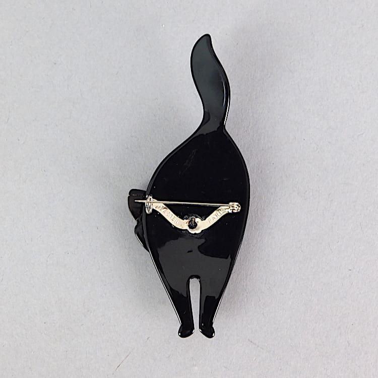 Bachus cat brooch made in the 1990’s by Lea Stein. Signed on the V clasp. Measures 4 inches (10cm) high. Ref: the Lea Stein book p49. In as-new condition.