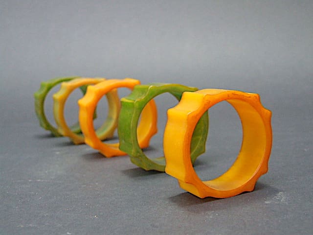 Set of five bakelite or phenolic napkin rings.
