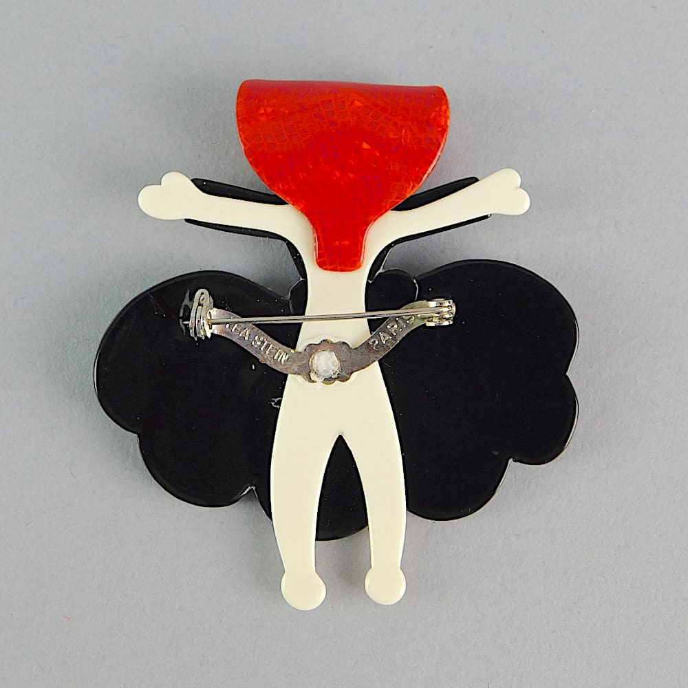 A glittery celluloid ballerina (Scarlet O’Hara), fitted with a signed safety clasp.