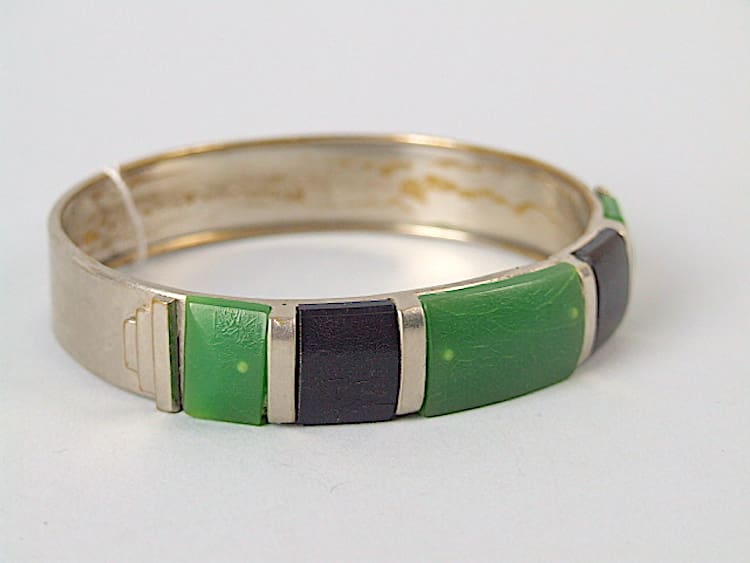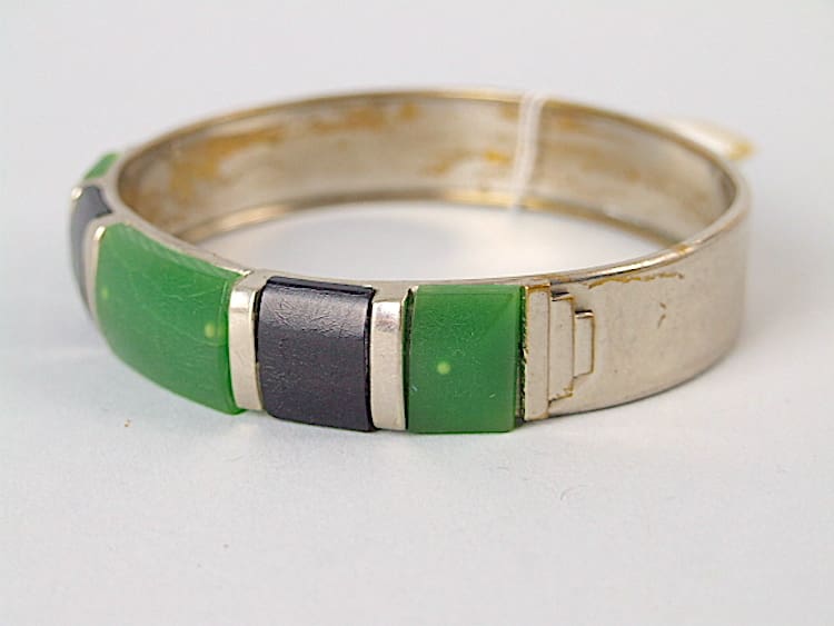 Galalith and chrome Jakob Bengel bangle. Made in the early 1930’s.