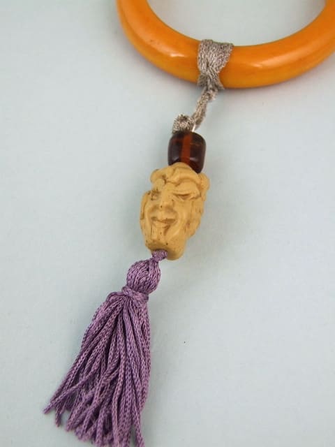 1920’s Belgian bakelite bangle by Ebena with oriental face charm.