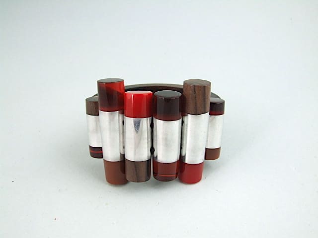 Vintage phenolic and lucite chunky bangle, a signed piece by Ernesto de Barcelona. Probably dates to the 1960s – 1970s.