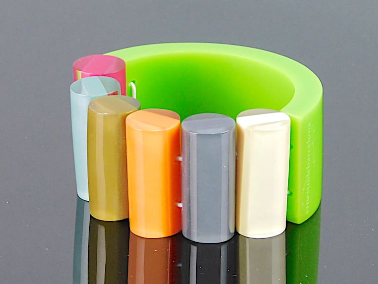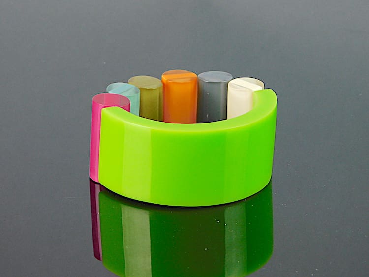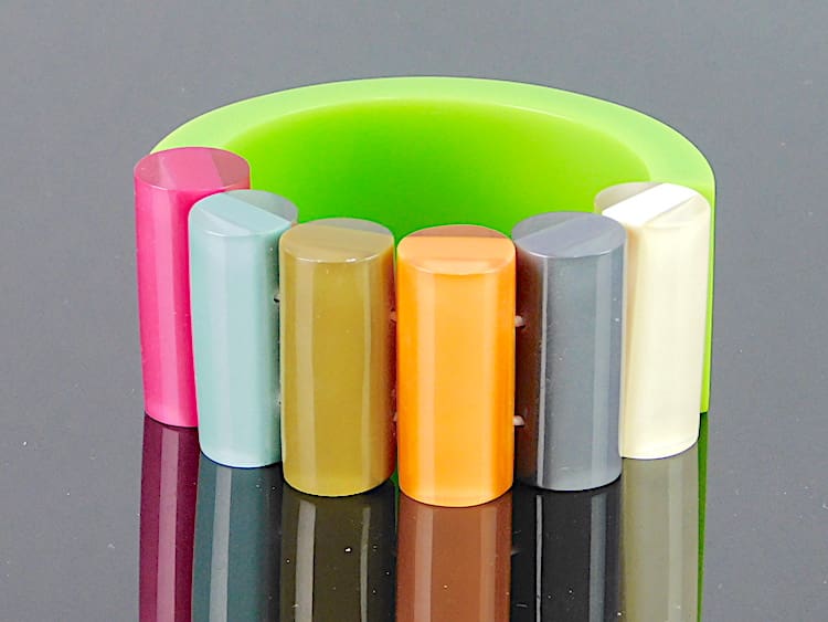 Vintage phenolic and lucite chunky bangle, a signed piece by Ernesto de Barcelona. Probably dates to the 1960s – 1970s.