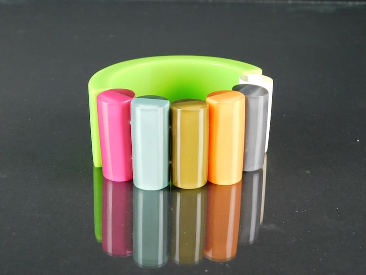 Phenolic elasticated art deco bangle. Signed Ernesto de Barcelona to the side.