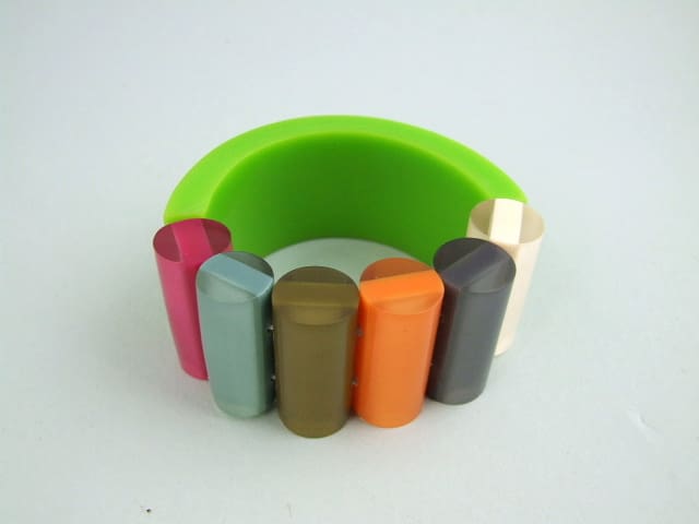 Vintage phenolic and lucite chunky bangle, a signed piece by Ernesto de Barcelona. Probably dates to the 1960s – 1970s.