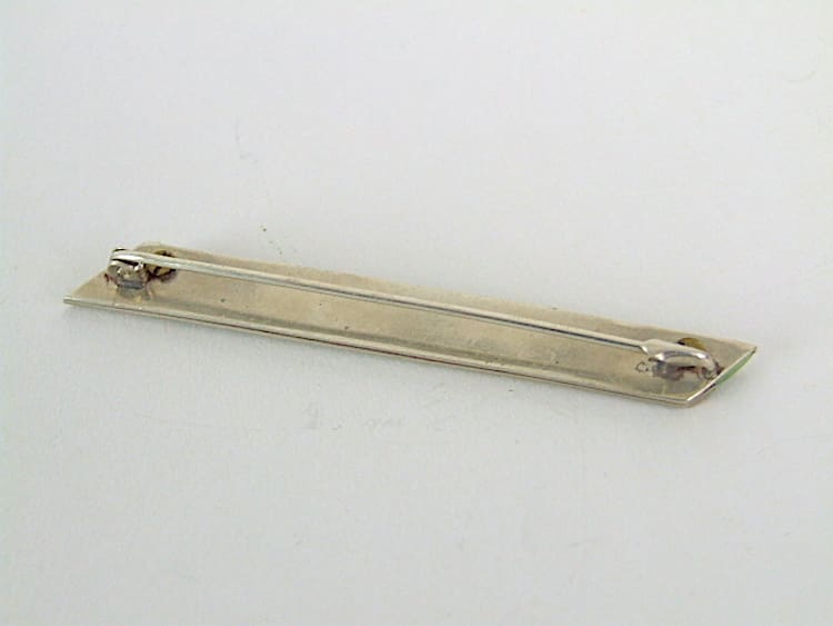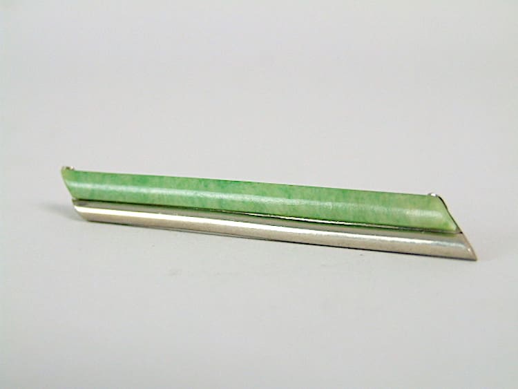 Art deco green galalith and chrome bar brooch. Made by Jakob Bengel in the early 1930s.