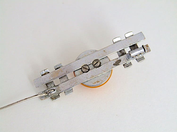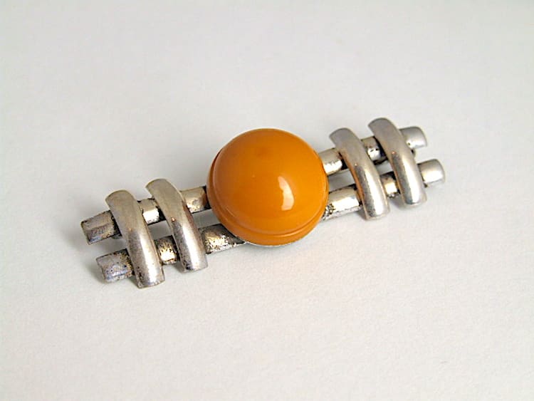 Honey coloured galalith and chrome brooch, made in Czechoslovakia in the early 1930’s.