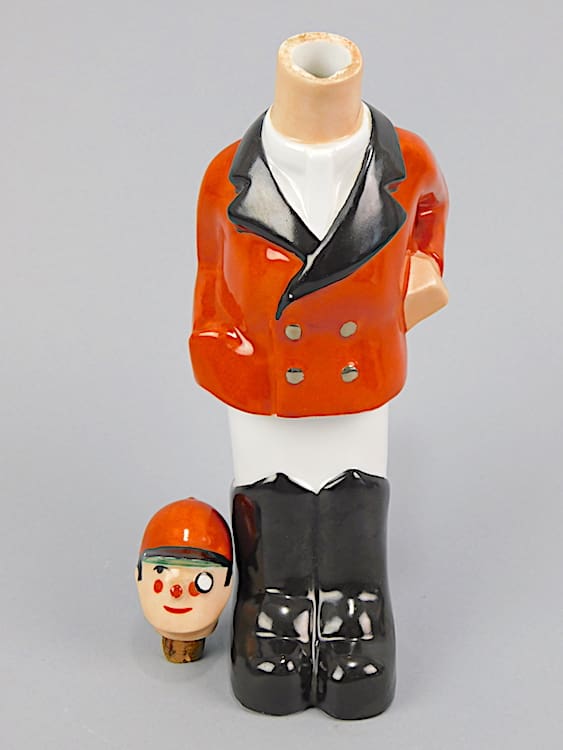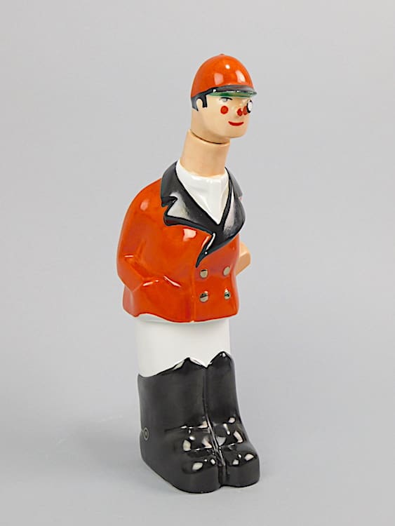 This unusual and rare comical flacon (bottle) was designed by P. Bastard and modelled on a comic series by Margerie. Margerie also designed items for Robj of Paris. Strangely, this one bears the markings of Limoge and P. Dunque and is therefore a bit of a mystery.